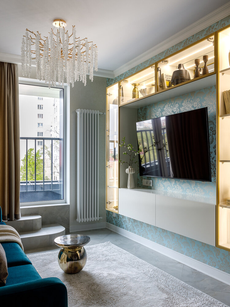 Фотография: Гостиная в стиле Классический, Современный, Эклектика, Квартира, Проект дня, 3 комнаты, 60-90 метров, Уфа, Ольга Маганова, современный с элементами классики и роскоши – фото на INMYROOM