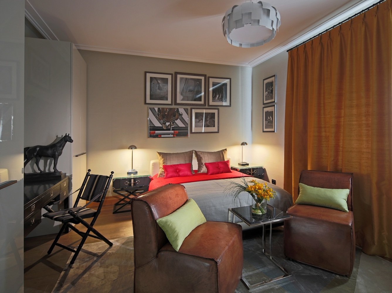 Спальня в современном стиле с жокейским декоромГамма