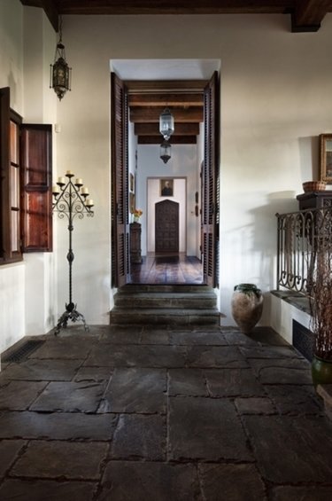 Фотография: Прихожая в стиле Прованс и Кантри, Дом, Терраса, Цвет в интерьере, Дома и квартиры, Бассейн, Камин, Стены, Балки – фото на INMYROOM