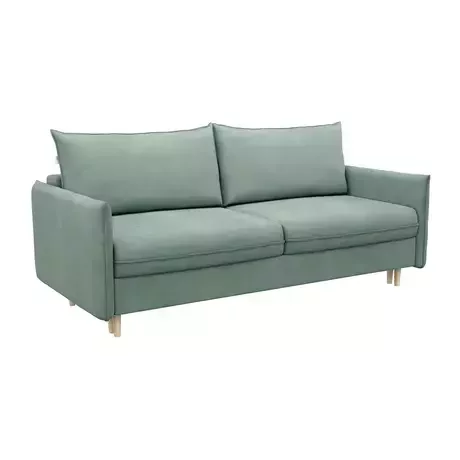 Ищете компактный диван, который не займет всю гостиную, но обеспечит комфортный сон для двоих? Диван «Сканди» в нежном мятном цвете превращается в полноценную двуспальную кровать 144×190 см за считанные секунды. Деревянные ножки и узкие подлокотники визуально "облегчают" конструкцию, делая диван идеальным для небольших пространств.Три главных преимущества: