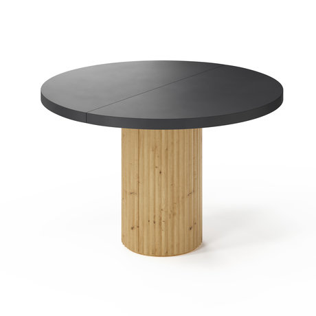Ищете стол, который подойдет и для семейных завтраков, и для обедов с друзьями? «Далим» с черной столешницей трансформируется из компактного круглого стола в просторный овальный за одно движение. Увеличивается с 120 см до 180 см в длину, сохраняя устойчивость даже при полной сервировке.Три главных преимущества:- Скрытый механизм трансформации — полностью интегрирован в столешницу, сохраняя минималистичный дизайн- Массивные опоры из дуба — обеспечивают стабильность как в сложенном, так и в разложенном виде- Толщина столешницы 6 см — создает визуальный эффект монолитности и солидностиСтол идеален для помещений от 18 м². В сложенном виде его диаметр 120 см позволяет комфортно расположиться семье из 4-6 человек. После трансформации вместимость увеличивается до 10 персон, что делает его универсальным решением для тех, кто часто принимает гостей.Материалы и конструкция:- Столешница из МДФ — устойчива к температурным перепадам и не деформируется- Подстолье диаметром 50 см — выполнено из массива дуба с сохранением натуральной текстуры и сучков- Двухслойное матовое покрытие — защищает поверхность от повседневных повреждений и упрощает уход- Контрастное сочетание — черный верх и натуральное дерево опор создают современный скандинавский образСтол не требует специального ухода — достаточно протирать поверхность влажной салфеткой. Подходит для ежедневного использования благодаря надежному механизму раздвижения и прочным материалам.Производство: Беларусь, бренд Hi!moonГарантия: 12 месяцевОтзывы