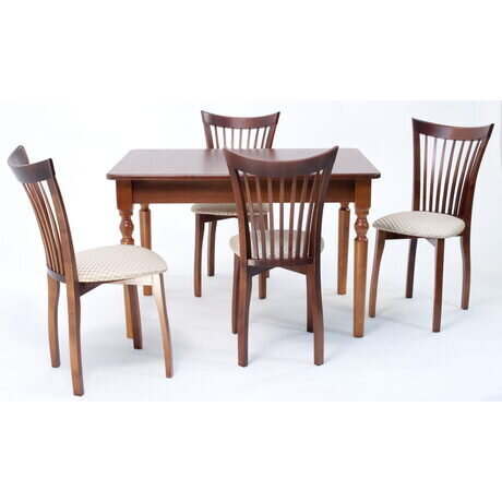 Комплект из деревянного стола Верди на каркасе из натурального дерева и 4 стульев Миранда отлично подойдет к интерьеру, выдержанному в классическом или свременном стиле. Данный комплект станет центральным элементом в гостиной, столовой зоне, на кухне, позволив создать уютное обеденное место, где смогут собираться члены дружной семьи и их гости. У модели скругленные углы столешницы. Такое решение исключит риск сколов и обеспечит безопасность, в том числе, детям.