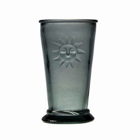 Объёмный стакан для воды, компотов, газировки и прочих освежающих напитков. Модель тёмно-серого цвета выделяется практичным и лаконичным дизайном. Стенки сосуда имеют единственное украшение – небольшое, слегка выделяющееся над поверхностью, солнышко.