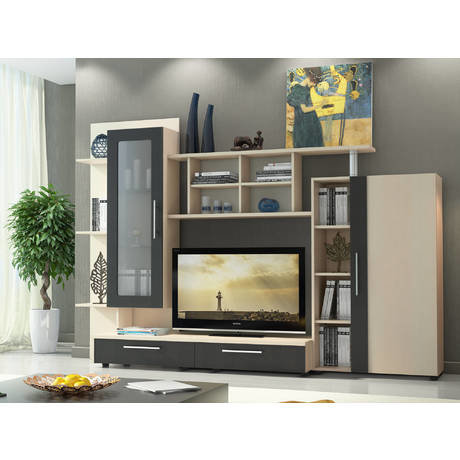 Стенка Франк. Каркас — ЛДСП. Цвет — черный, бежевый.