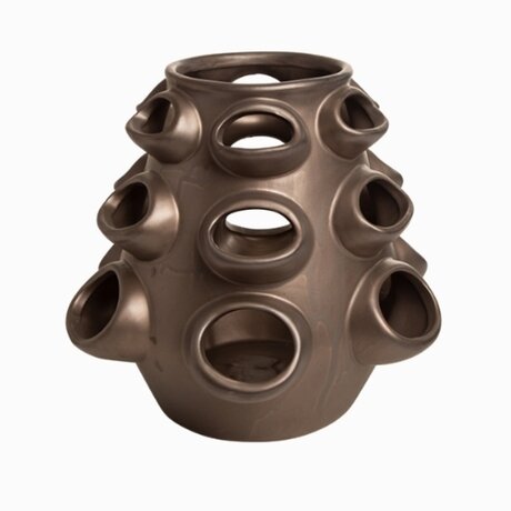 Эта ваза прекрасно подойдет для оформления как живых, так и сухих цветов, подчеркивая их красоту и создавая гармонию в вашем пространстве. Гарантия: 1 год. Цвет: бронзовый, Глубина (см): 34, Ширина (см): 34, Высота (см): 29