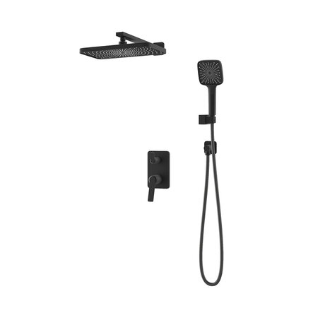 Встраиваемая душевая система Parker в чёрном матовом цвете – практичная и стильная, её дизайн сочетает в себе трендовый минимализм форм и четкие грани. Готовый набор включает всё необходимое для создания уютного и функционального пространства: смеситель, верхняя лейка с кронштейном для тропического душа, большая ручная лейка с 3 режимами, душевой шланг 1,5 м и выход для подключения шланга с держателем для лейки. За счёт скрытого монтажа и отсутствия выступающих элементов набор экономит пространство и упрощает уборку. Подключение с помощью любых труб, диаметр входных отверстий – ½ дюйма.