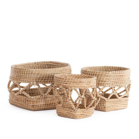Стильный набор корзин LAILA удачно сочетает в себе красоту, функциональность и утонченность. Эти необычные аксессуары из морской травы подходят не только для хранения вещей, но и являются привлекательным декоративным элементом. Уникальное плетение, оригинальная форма, природная красота – необычный комплект восхитит даже самого требовательного владельца.