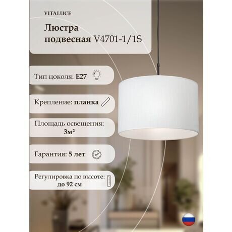 Название: | Подвес V4701-1/1S, 1xE27 макс. 40Вт |