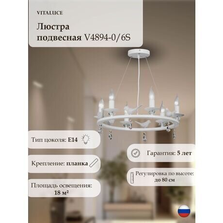Название: | Люстра V4894-0/6S, 6xE14 макс. 40Вт |