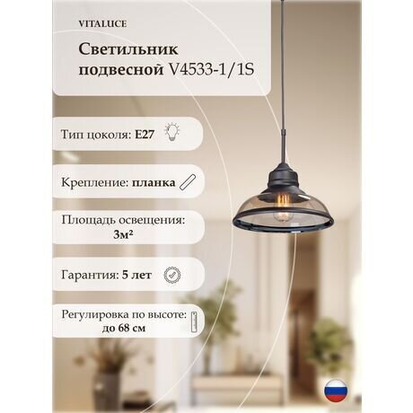 Стоимость доставки товара «Подвес V4533-1/1S, 1хE27 макс. 60Вт» можете уточнить здесь