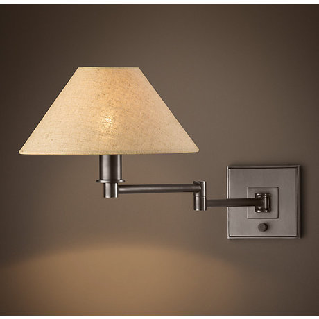 Бра Petite candlestick swing-arm sconce bronze с льняным абажуром