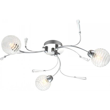 Назначение светильника: для гостиной, Стиль светильника: модерн, Материал светильника: металл, стекло, Диаметр: 530 мм, Высота: 140 мм, Количество ламп: 3 шт, Тип лампы: галогенная, Мощность: 28 Вт, Патрон: G9, Цвет арматуры: хром