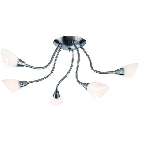 Назначение светильника: для гостиной, Стиль светильника: модерн, Тип: потолочная, Материал светильника: металл, стекло, Ширина: 590, Высота: 430, Количество ламп: 5 шт, Тип лампы: накаливания, Мощность: 40 Вт, Патрон: Е14, Цвет арматуры: матовый никель