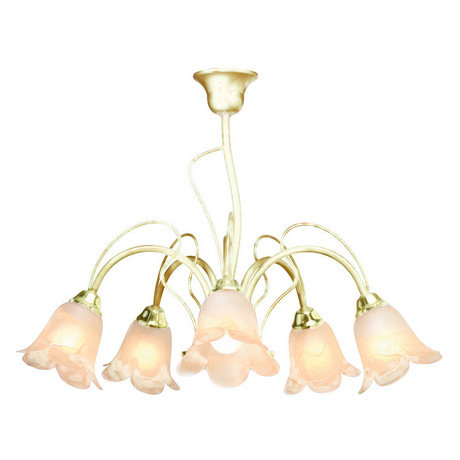 Назначение светильника: для гостиной, Стиль светильника: флористика, Тип: подвесная, Материал: стекло, металл, Диаметр: 580, Высота: 520, Количество ламп: 5 шт, Тип лампы: накаливания, Мощность: 60 Вт, Патрон: Е14, Цвет арматуры: шампань