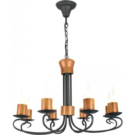 Назначение светильника: для комнаты, Стиль светильника: кантри, Тип: подвесная, Материал светильника: дерево, металл, Диаметр: 700 мм, Высота: 1000 мм, Количество ламп: 8 шт, Тип лампы: накаливания, Мощность: 60 Вт, Патрон: Е14, Цвет арматуры: коричневый