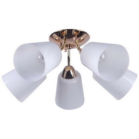 Назначение светильника: для гостиной, Стиль светильника: модерн, Тип: подвесная, Длина (мм): 520, Ширина: 520, Высота: 180, Количество ламп: 5, Патрон: Е27, Цвет арматуры: золото