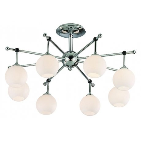 Назначение светильника: для комнаты, Стиль светильника: модерн, Материал светильника: стекло, металл, Ширина: 630, Диаметр: 630, Высота: 330, Количество ламп: 8 шт, Тип лампы: галогенная, Мощность: 40 Вт, Патрон: G9, Цвет арматуры: хром