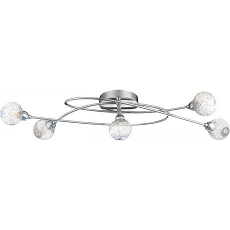 Назначение светильника: для гостиной, Стиль светильника: модерн, Тип: потолочная, Материал светильника: металл, пластик, Длина: 760, Ширина: 200, Высота: 150, Количество ламп: 5 шт, Тип лампы: галогенная, Мощность: 33 Вт, Патрон: G9, Цвет арматуры: хром