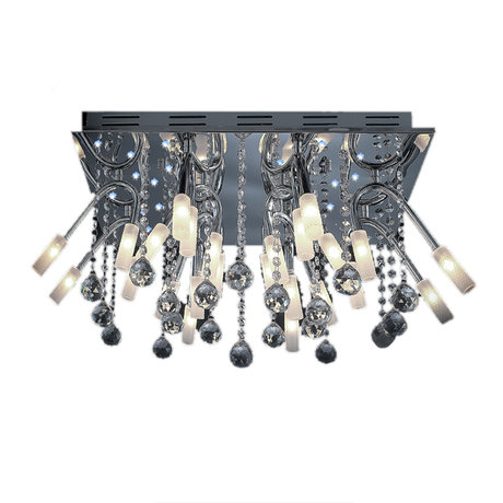 Назначение светильника: для гостиной, Стиль светильника: модерн, Материал светильника: металл, стекло, хрусталь, Ширина: 680 мм, Высота: 270 мм, Количество ламп: 24 шт, Тип лампы: галогенные и светодиодные, Мощность: 20 Вт, Патрон: G4, Цвет арматуры: хром
