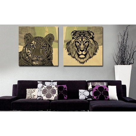 Графические изображения хищников семейства кошачьих, выполненных в технике гравюры, оригинальным образом наполнят интерьер и придадут атмосферу романтики и африканской саванны.