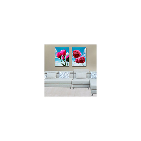 Ярко-розовые цветы на фоне сочного голубого летнего неба - что может быть прекраснее? Украсив стену такой картиной вы добавите в атмосферу дома уют, тепло и яркие краски!