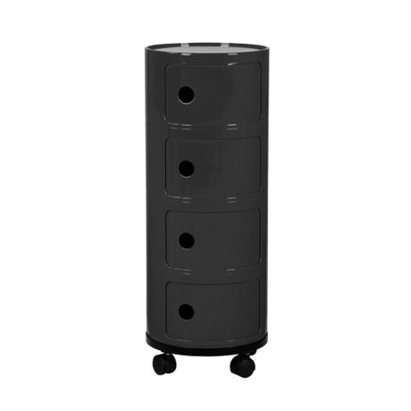 Тумба черного цвета с четырьмя отсеками на колесиках