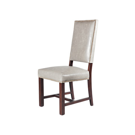 Обеденный стул Weston несомненно станет великолепным украшением интерьера. Мягкая кожаная обивка нежно-серого цвета декорирована золотыми гвоздиками и чудесно сочетается с темно-коричневой деревянной основой.