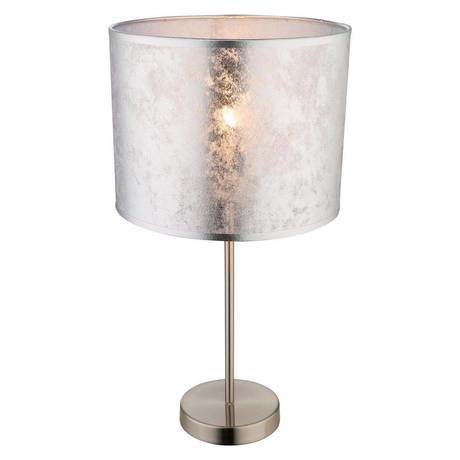 Количество ламп: 1; Мощность лампы, W: 60; Общая мощность, W: 60; Площадь освещения, м2: 3.3; Тип цоколя: E27; Тип лампочки (основной): Накаливания; Напряжение, V: 230; Степень защиты, IP: 20; Виды материалов: Текстильные; Материал арматуры: Металл; Материал плафонов: Ткань; Цвет: Хром; Цвет арматуры: Матовый никель; Цвет плафонов: Хром; Место установки: На стол.