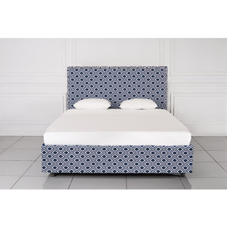 КРОВАТЬ с мягким изголовьем и тёмно-синим орнаментом 200х200