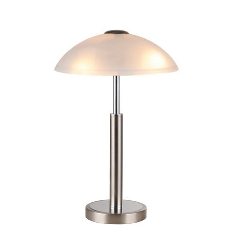 Количество ламп: 3; Мощность лампы, W: 60; Общая мощность, W: 180; Площадь освещения, м2: 10; Тип цоколя: E14; Тип лампочки (основной): Накаливания; Напряжение, V: 230; Степень защиты, IP: 20; Виды материалов: Стеклянные; Материал арматуры: Металл; Материал плафонов: Стекло; Цвет: Белый; Цвет арматуры: Хром; Цвет плафонов: Белый; Место установки: На стол. Диаметр: 30 см, высота: 46 см.
