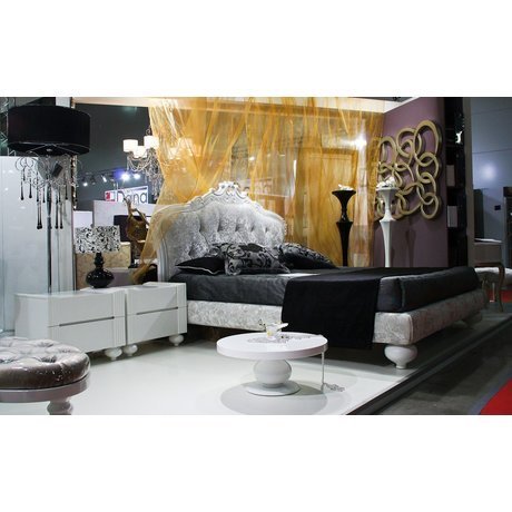 Кровать на низких фигурных ножках выполнена в стиле Ар деко. Изголовье обито белым велюром, декорировано стежкой капитоне и украшено изысканной резьбой. Сделана из высококачественного МДФ высокой плотности и массива дерева. Ножки в отделке белый матовый лак. Поставляется с решеткой, без матраса. Размер спального места 180*200 см. Комплектуется решеткой производства России.