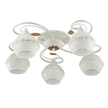 Бренд: Lumion; Коллекция: Markella; Количество ламп: 5; Мощность лампы, W: 40; Общая мощность, W: 200; Площадь освещения, м2: 11.1; Тип цоколя: E14; Тип лампочки (основной): Накаливания; Напряжение, V: 220; Степень защиты, IP: 20; Виды материалов: Стеклянные; Материал арматуры: Металл; Материал плафонов: Стекло; Цвет: Белый; Цвет арматуры: Белый; Цвет плафонов: Белый; Место установки: На потолок.