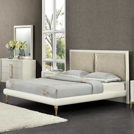 Кровать на изогнутых резных ножках выполнена в стиле Ар деко. Мягкое изголовье разделено изящным золотым кружевным декором на две подушки. Размер спального места 160*200 см. Поставляется без матраса и без постельных принадлежностей. Кровать с решеткой TRENTO отделка шпон дуба (oak veneer) в лаке цвета топленого молока (melted milk), сусальное золото (gold leaf), ткань светло-серый велюр (Moki-51).