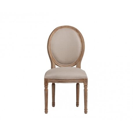 Стул с дубовым каркасом, искусственно состаренным для придания эффекта винтажности, и бежевой обивкой изо льна гармонично впишется в интерьер столовой в стиле прованс. Главным украшением изделия являются резные ножки, придающие ему изысканность. Поролоновый наполнитель делает стул максимально мягким и удобным.
