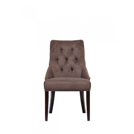 Для тех, кто привык окружать себя исключительно красивыми вещами, предлагается модель стула, обтянутого благородным бархатом коричневого цвета. Ножки модели деревянные, что является залогом его длительной службы. Ножки стула черного цвета: две передние прямые, а задние – изогнутые. Модель заслуживает того, чтобы украшать собой гостиную комнату, выдержанную в классике.